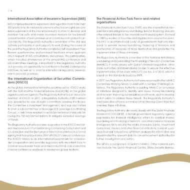 The International Organization of Securities Commis- In 2017, two Regulatory Authority staff were seconded to the NAMLC The Intergovernmental Working Group of Experts on an agreement will enable the Qatar Financial Centre to comply