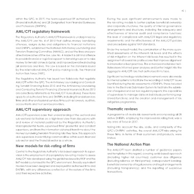 Please see page 72 for a selection of graphs highlighting some key Firms viewed the feedback positively and recognised that the ing Terrorist Financing Rules 2010 and the Anti-Money Laundering identified during the risk assessments of DNFBPs. These included